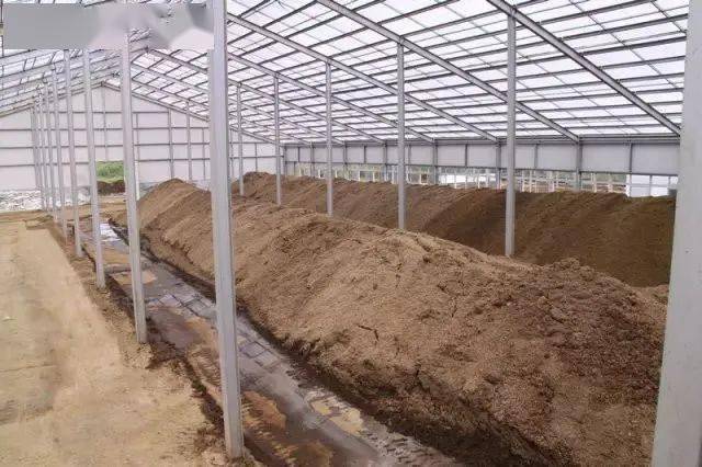 工序依次為將主料、輔料等混合、調(diào)制水分(水分控制在60%左右)、建堆(寬2米、高1米,長度不限)、封堆(堆內(nèi)每個(gè)1-2米插通氣孔或者小把玉米秸稈,為微生物提供氧氣的通道,用塑料布封蓋)、翻堆(當(dāng)堆內(nèi)溫度達(dá)到60℃時(shí),翻堆,并補(bǔ)充水分)。